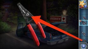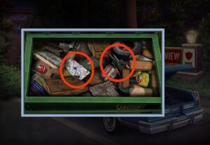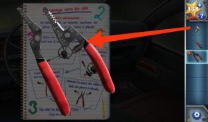 - Dans la poubelle, il y a une pince et une page arrachée, prenez-les.