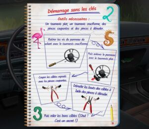 - Attachez la page arraché, vous aurez les étapes à suivre pour démarrer la voiture sans clés.
