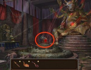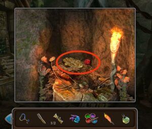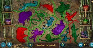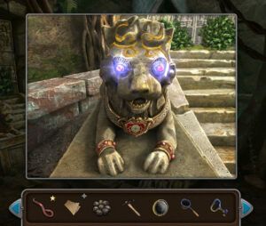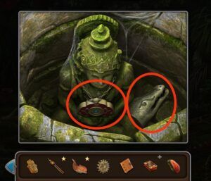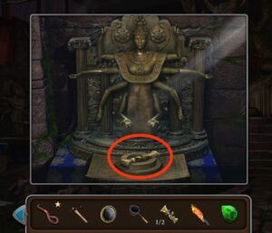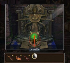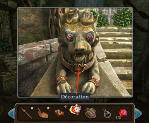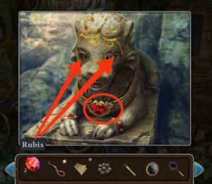 - Mettez les rubis sur la statue du lion. Appuyez sur le collier, puis rappelez vous de l’ordre d’allumage des rubis.