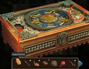 - Placez les amulettes sur la boîte. Terminez le puzzle.