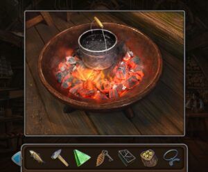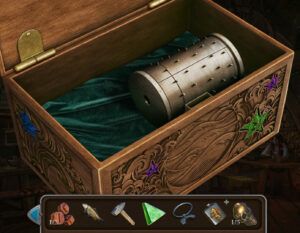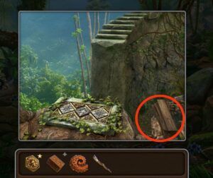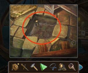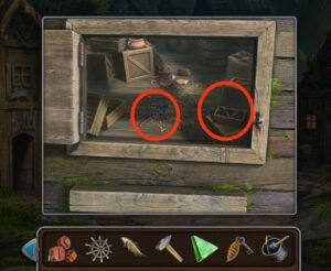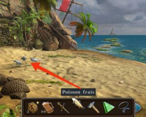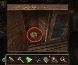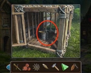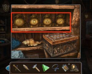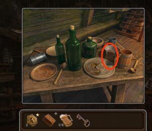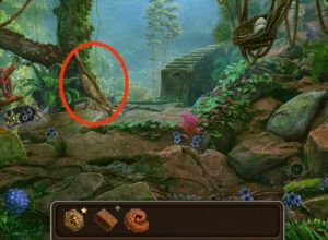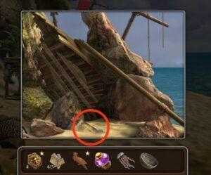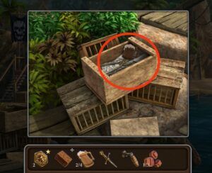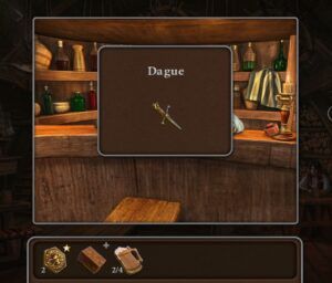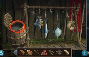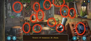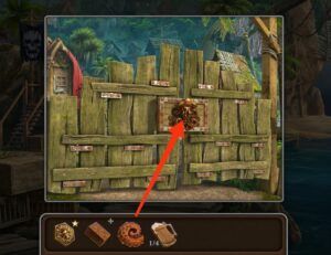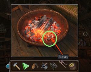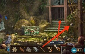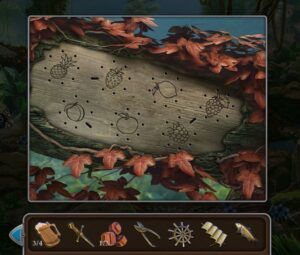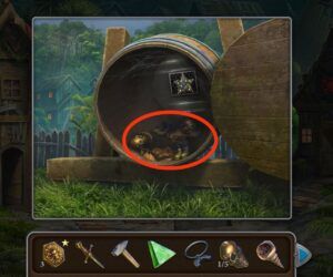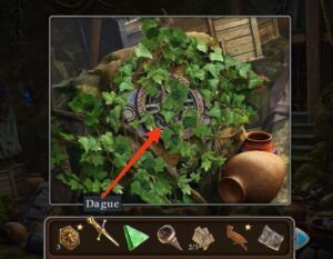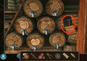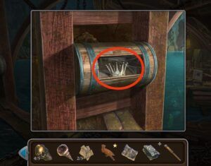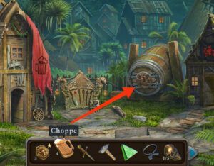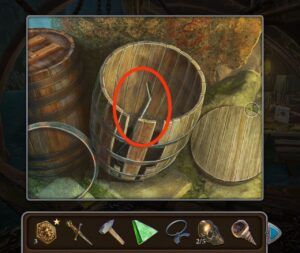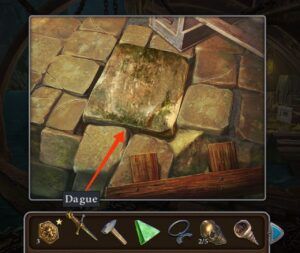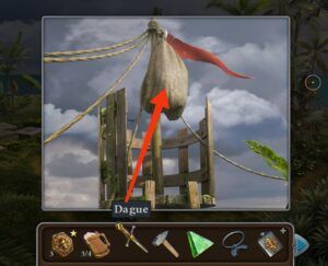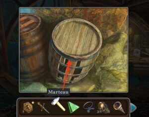 - Utilisez la dague pour enlever l’écorce, vous aurez un indice pour terminer le puzzle des tonneaux.