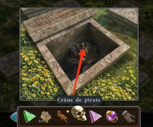 - Placez la couronne sur la statue, prenez le relief de crâne.