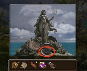 - Utilisez la dague pour ouvrir le coquillage, prenez le relief du crâne.