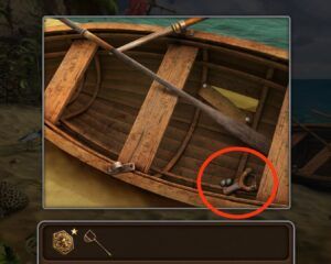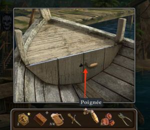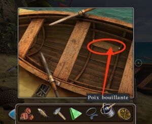 - Utilisez le marteau et la poix bouillante pour réparer le bateau.