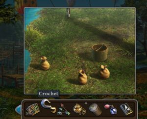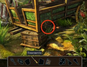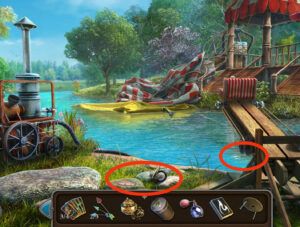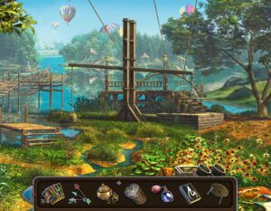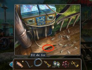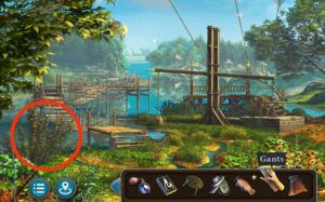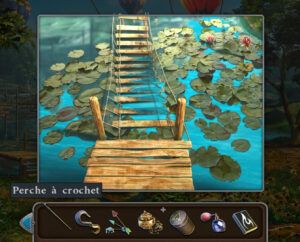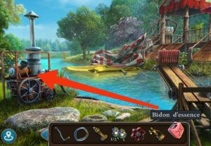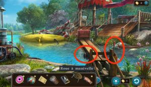 - Traversez le pont, prenez la roue, la flèche et le dirigeable.