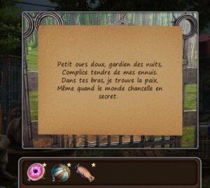 - Entrez dans la tente, prenez la clé et la ballerine.