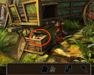 - Placez la statue à sa place, prenez la tomate et le fragment du masque.