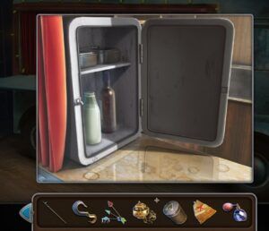 - Utilisez la poignée de frigo pour ouvrir le réfrigérateur, prenez le lait.