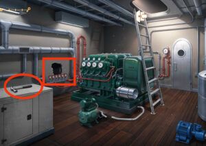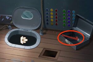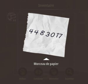 - Montez l’échelle, terminez le puzzle, prenez le morceau de papier et le tournevis.