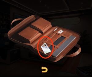 - Utilisez le flyer et la feuille de papier pour trouver la combinaison pour ouvrir la valise. Il faut mettre les lettres en ordre alphabétique.