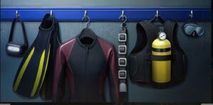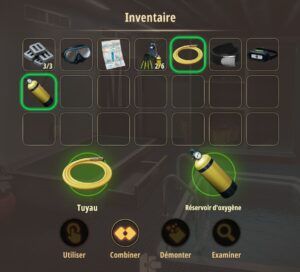- Prenez le réservoir d’oxygène et la combinaison de plongée.