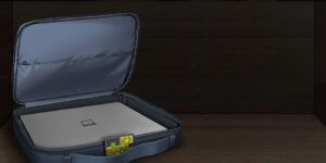 - Prenez l’ordinateur et le mouchoir.