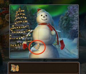 - Appuyez sur le bonhomme de neige, prenez le biscuit en gingembre.