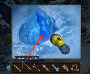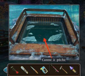 - Prenez la canne à pêche et le marteau.