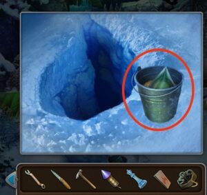 - Allez au montagne, éclairez le trou, utilisez la canne à pêche pour prendre le seau.