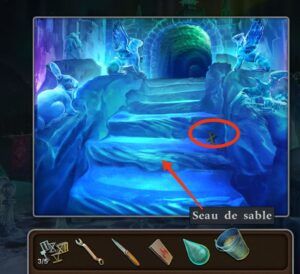 - Prenez la goutte en cristal et le seau de sable.