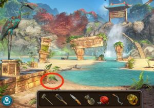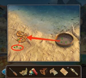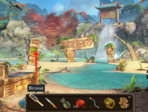 - Retournez au cascade, utilisez le tamis pour trouvez les gemmes vertes.
