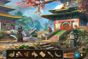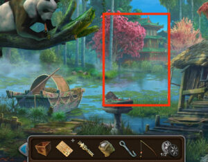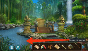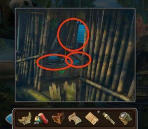 - Placez le bambou sur la porte du jardin, terminez le puzzle pour ouvrir la porte.