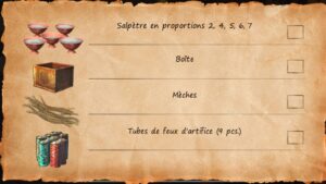 - Parlez au scientifique, il vous demande de lui apporter les objets pour fabriquer les feux d’artifice.