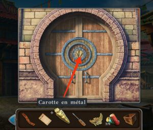 - Mettez la carotte en métal sur la serrure de la porte, terminez le puzzle.
