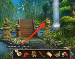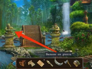 - Placez la banane en pierre et l’ananas en pierre sur les assiettes des singes, un puzzle apparaît il faut l’achever.