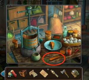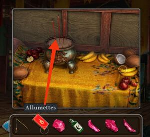 - Prenez la lanterne, le sac avec cuillère et les tubes de feux d’artifice.