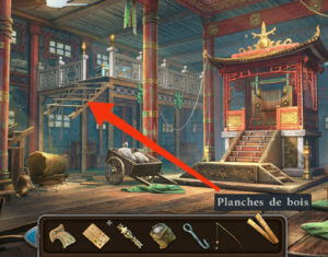 - Prenez le crochet, la canne à pêche et les planches de bois.