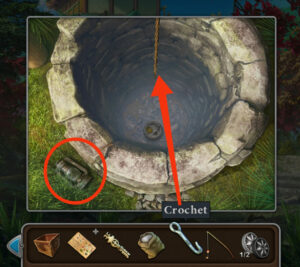 - Appuyez sur le puits, prenez la lanterne, accrochez le crochet à la corde.