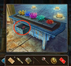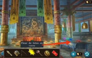 - Entrez dans la temple, placez la fleur de lotus en verre sur la table.
