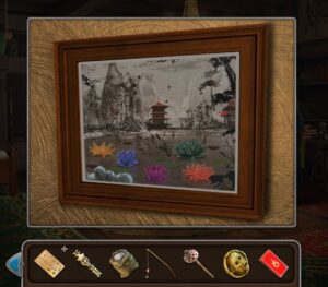 - Allez à la maison du scientifique, appuyez sur le tableau, il y a l’indice qui vous aide à ranger les fleurs de lotus.