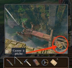 - Utilisez la canne à pêche pour rapprocher la planche, vous aurez un clapet de cloche.