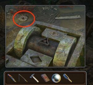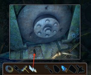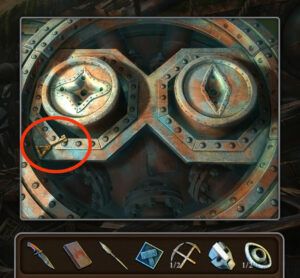 - Ouvrez la porte de la trappe, prenez le cristal et la clé à molette.