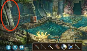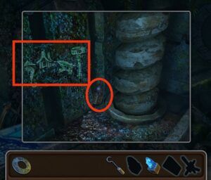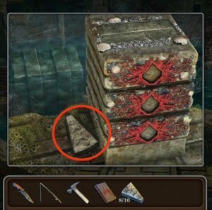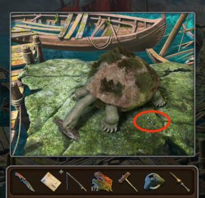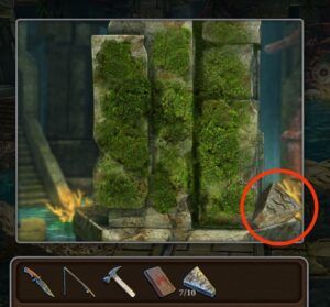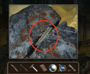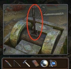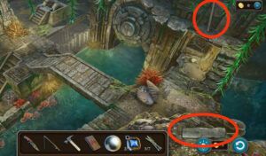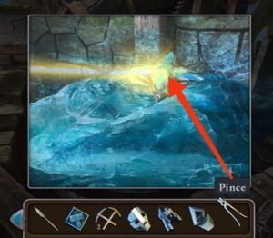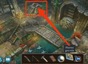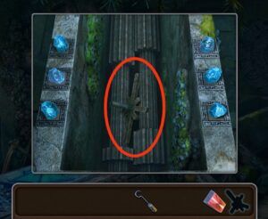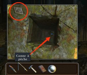 - Prenez la pierre gravée, utilisez la canne à pêche pour prendre le diamant.
