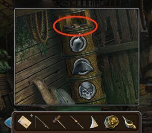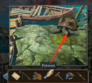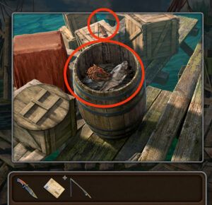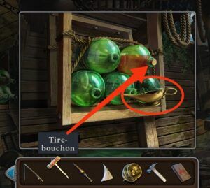 - Ouvrez le tonneau, prenez la tête, le poisson, et le tire-bouchon.