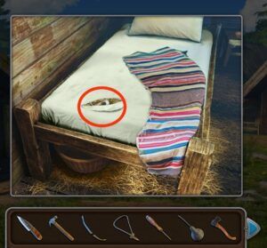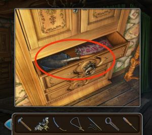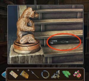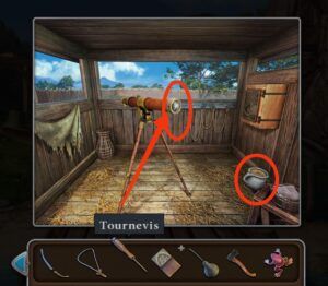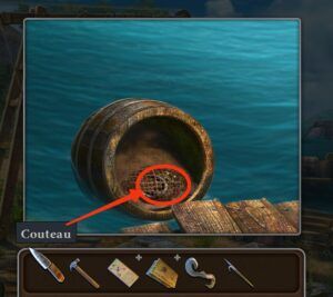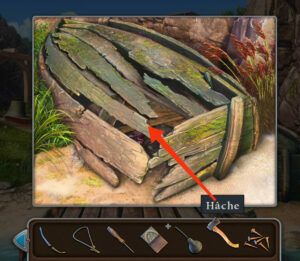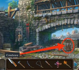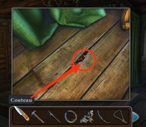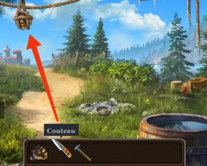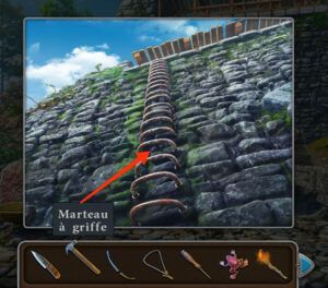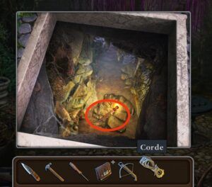 - Utilisez le couteau pour couper la corde, vous obtenez la dernière l’amulette en forme de loup.