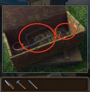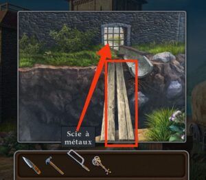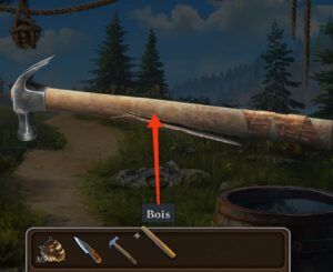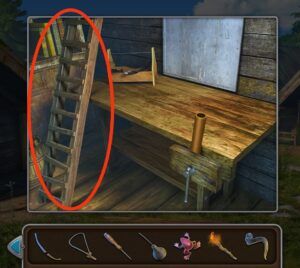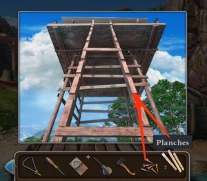 - Utilisez les planches, les clous et le marteau pour réparer l’échelle.