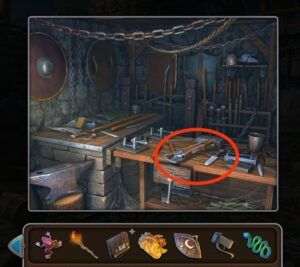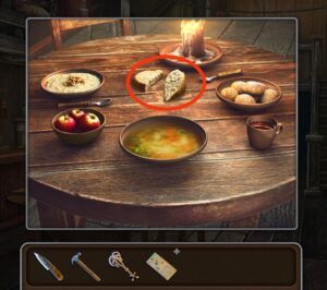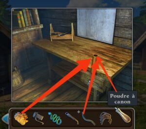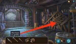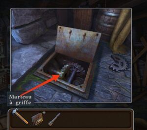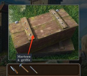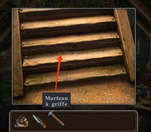 - Sortez de la pièce, prenez le couteau, la louche et le marteau cassé.