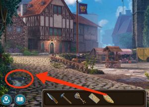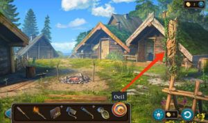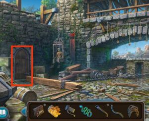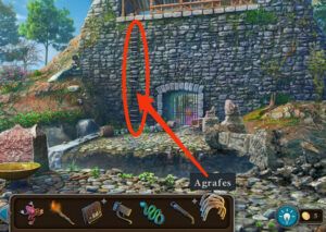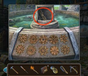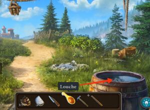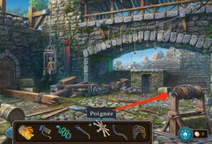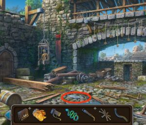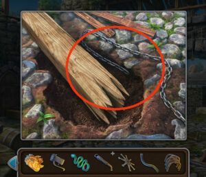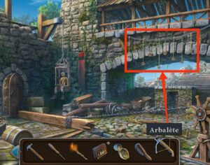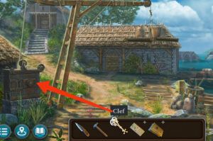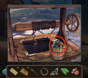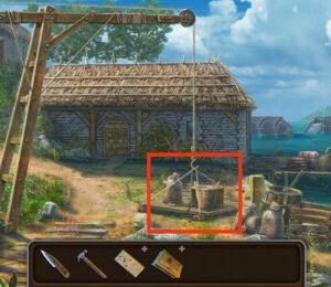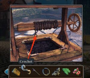 - Retournez au village, accrochez le crochet à la chaîne du puits.