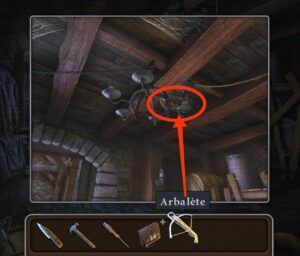 - Combinez l’arbalète, la gâchette, la branche d’arbalète le fut d’arbalète et la corde.