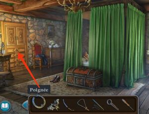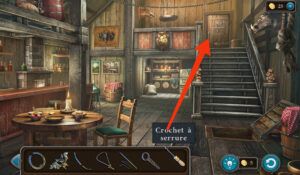 - Mettez le crochet dans la serrure de la chambre, terminez le puzzle.