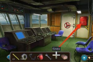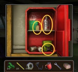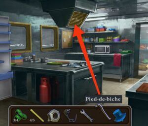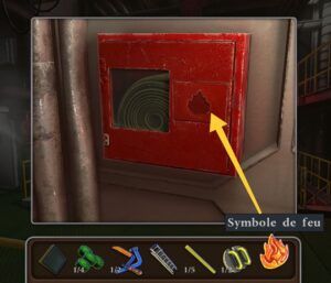 - Utilisez l’échelle pour atteindre l’alarme de feu, ouvrez l’alarme, prenez la batterie.