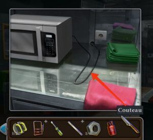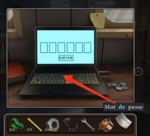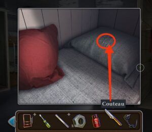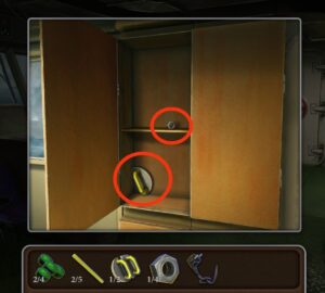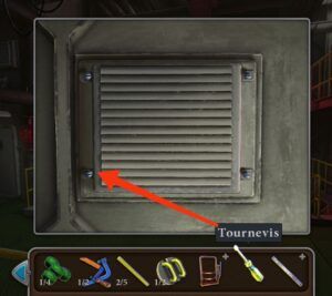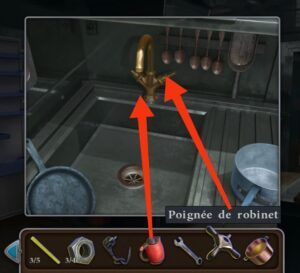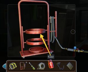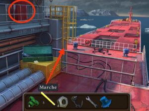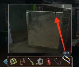 - Entrez dans la pièce, prenez le morceau de scie, l’escabeau et la marche.