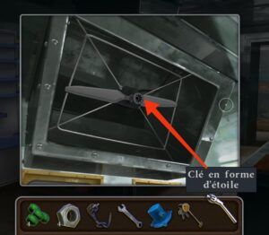 - Utilisez la clé en forme d’étoile pour prendre l’hélice.