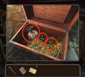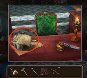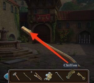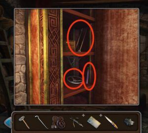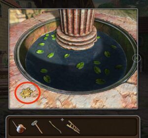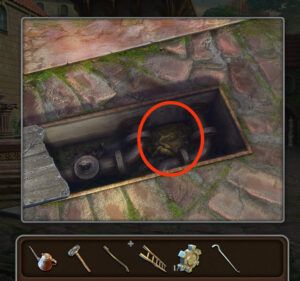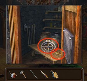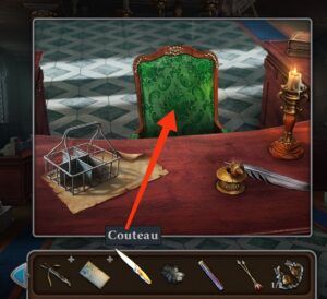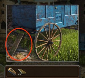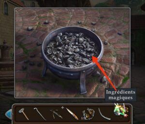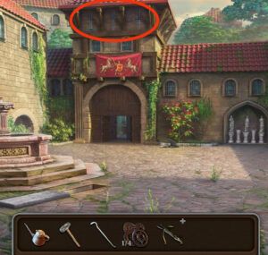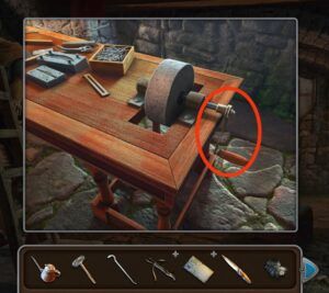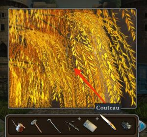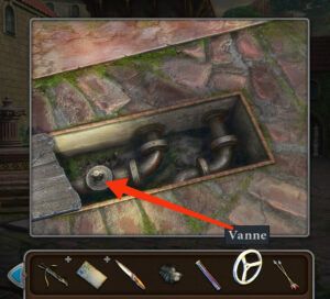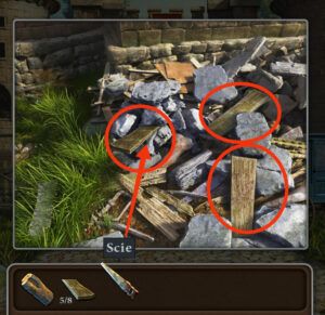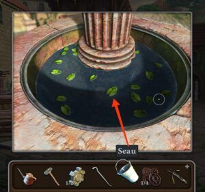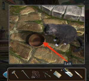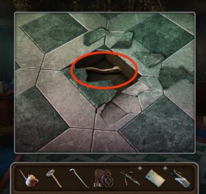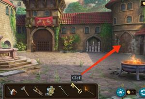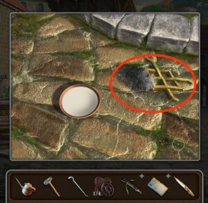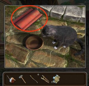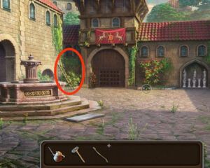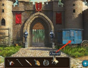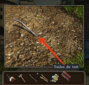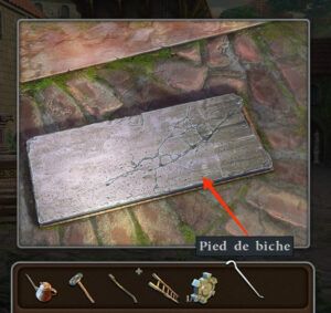 - Sortez du château, utilisez la tuile de toit pour déterrer le pied de biche.