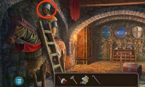 - Utilisez l’échelle pour atteindre la tête du chevalier.