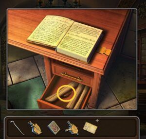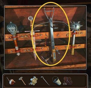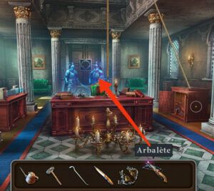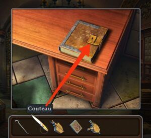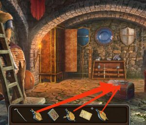 - Ouvrez le tiroir, prenez le bouclier et l’épée.