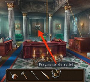 - Placez les fragments de relief sur la porte, terminez le puzzle.