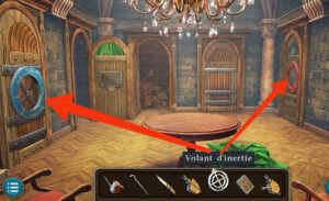 - Prenez les allumettes, le volant d’inertie et le bouclier et épée.