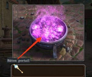 - Utilisez le bâton portail sur le feu enchanté, pour révéler le portail.